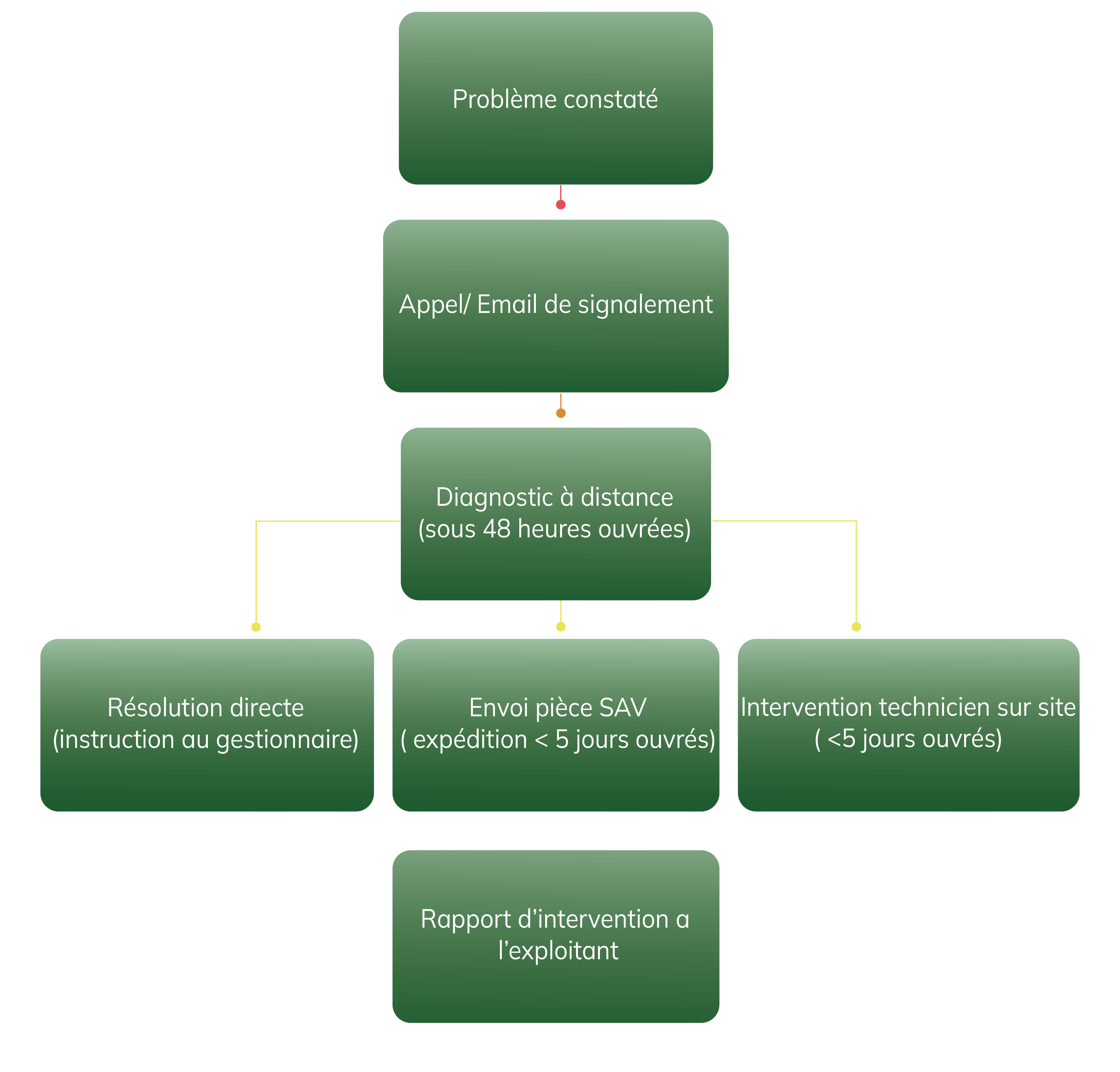 – Si l’incident nécessite une intervention, un technicien est dépêché sur place dans un délai de 5 jours ouvrés